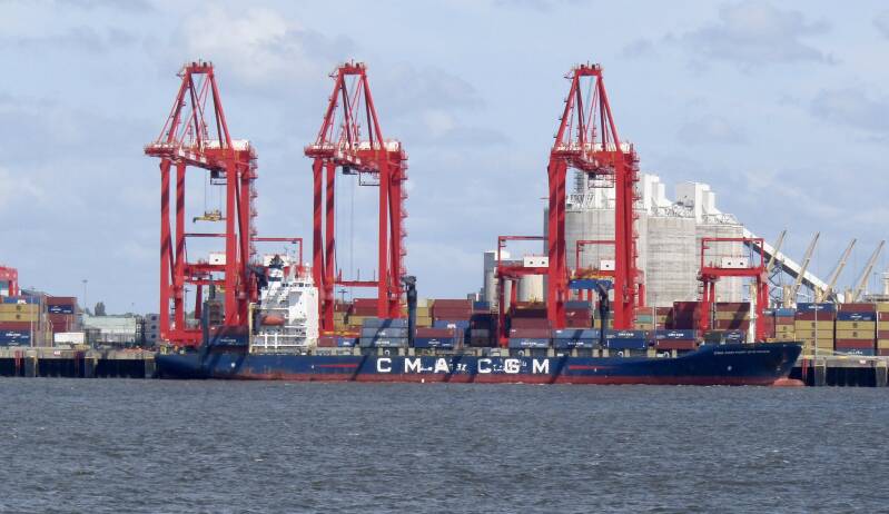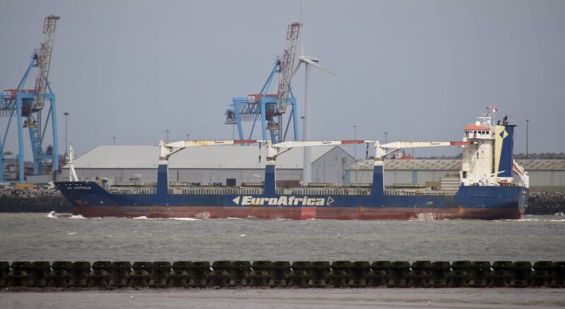 It’s carrying capacity is 809 TEU and her current draught is reported to be 5.9 meters.