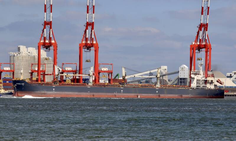 It’s carrying capacity is 35079 t DWT and her current draught is reported to be 7.7 meters.